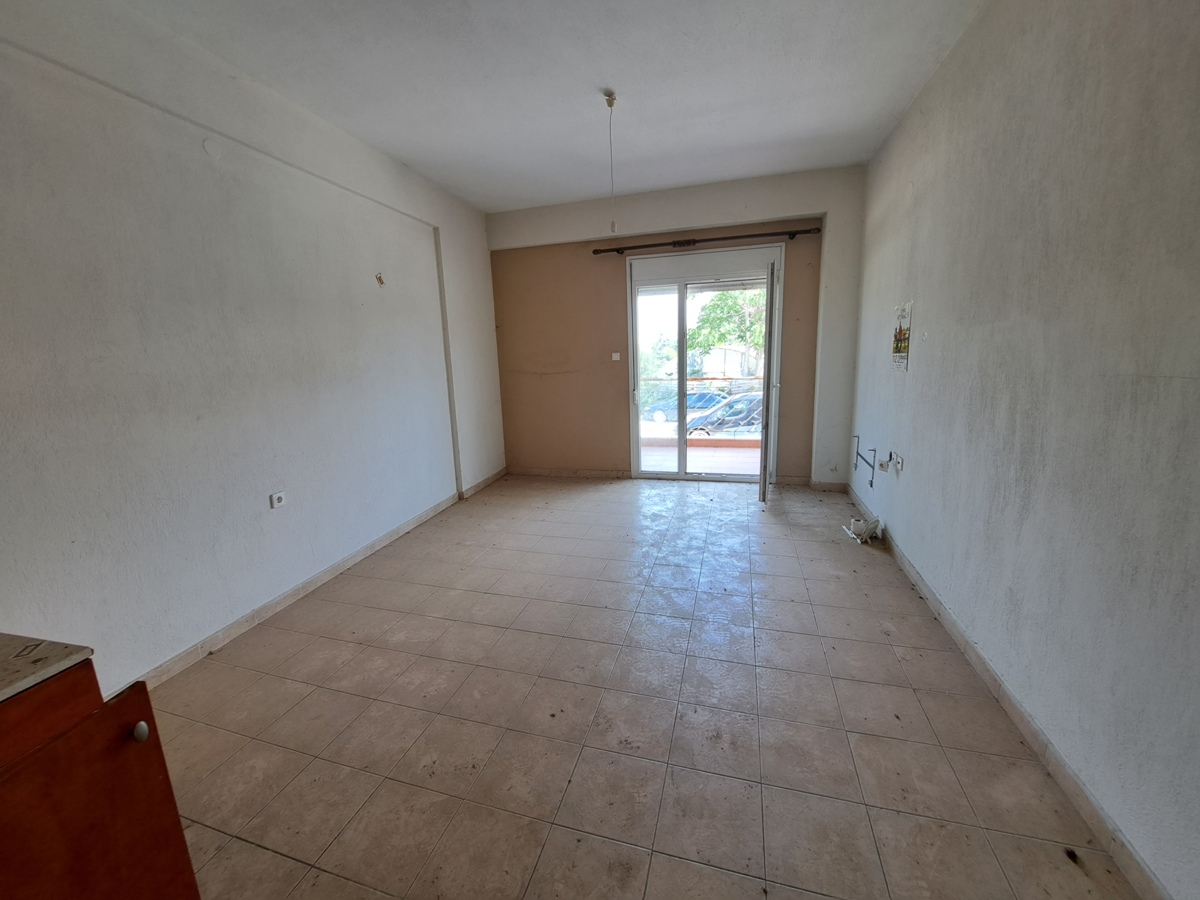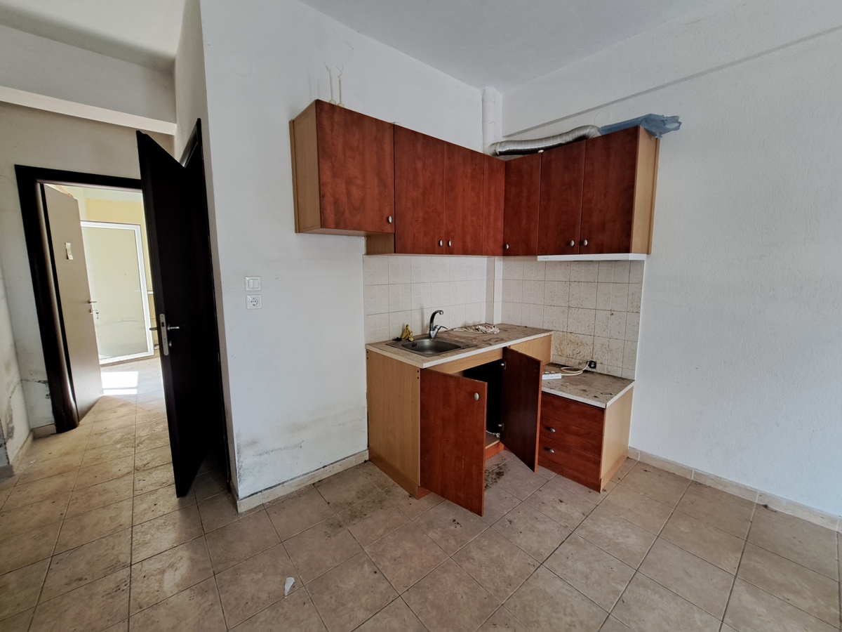 Γωνιακό, διαμπερές διαμέρισμα υπερυψωμένου ισογείου (ΙΣ4) επιφανείας 45,19 τ.μ. εντός συγκροτήματος κατοικιών (ΚΤΗΡΙΟ 3), που αποτελείται από ενιαίο καθιστικό με κουζίνα, 1 Υ/Δ, 1 λουτρό και εξώστη. Χρήζει συντήρησης.